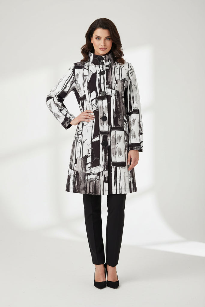 Dolcezza 75636 mustavalkoprinttinen korkeakauluksinen takki on