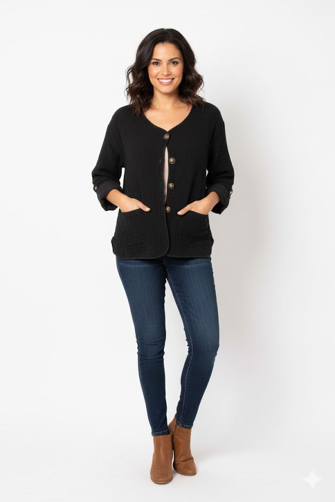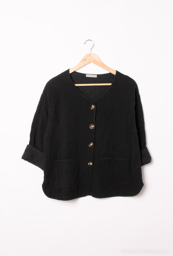Yksivärinen, musta puuvillajakku Evelyn. Susanne
