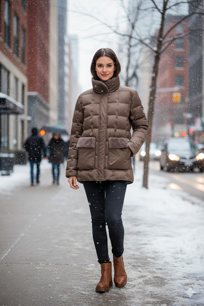 Kevyt ja ihana oliivin vihreä Etage-untuvatakki.