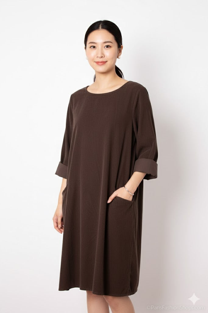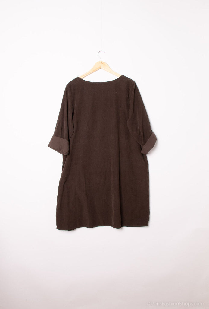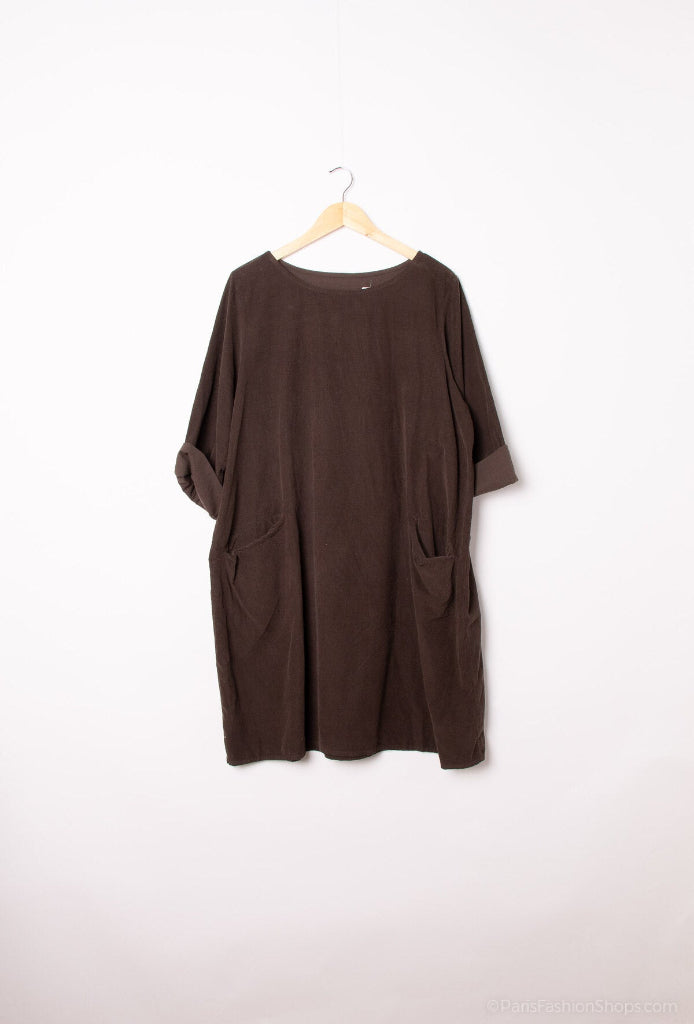 Sirolinjainen, yksivärinen Esther samettimekko. Pyöreä pääntie ja 2/3 hihat. Mekon edessä taskut. Ohut, mukava vakosametti. Toimii myös tunikana.