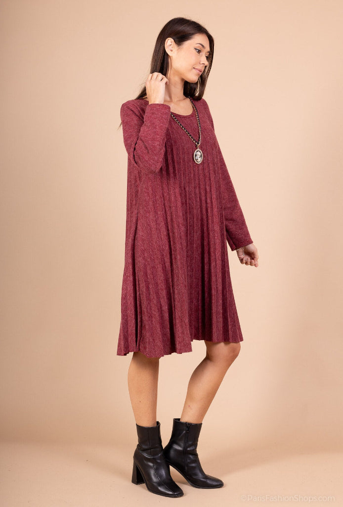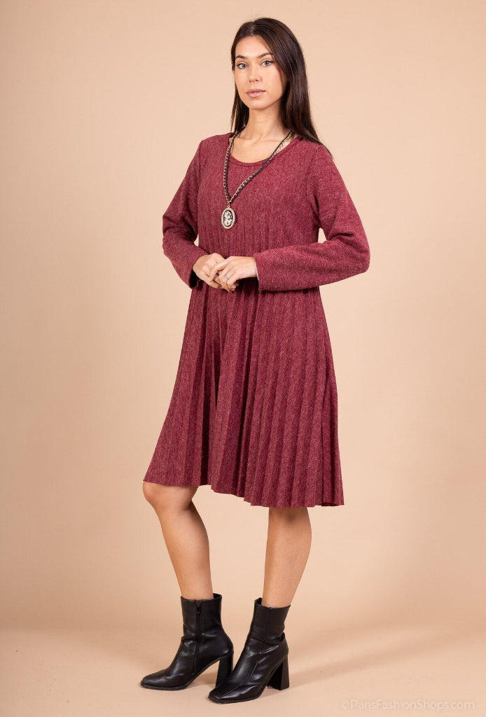 Ohutta neulosta, laskeutuva, pliseerattu Ivette mekko. Kapeat hihat, siro malli. Yhden koon mekko koolle 34-42.