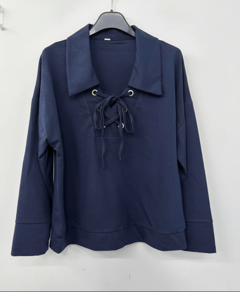 Oi mikä ihanuus! Tuulahdus menneiltä ajoilta! Iso kaulus, nyöritys edessä, leveähköt hihat. Yksivärinen Dian paita on ihanan pehmeä!