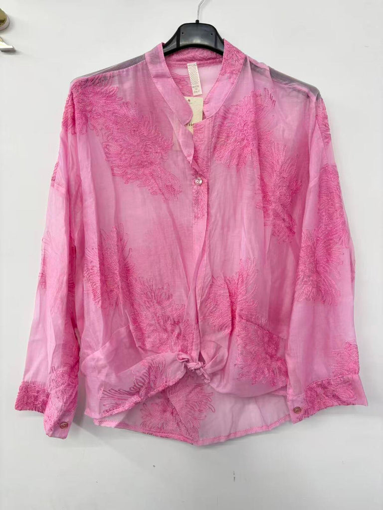 Läpikuultava Dory paita on ihanan köykeä! Pitkähihaisessa paitiksessa pystykaulus, laskokset helmassa kaventavat paitaa joten on helppo pitää helma muodikkaasti rusetilla. Tiputettu hiha.