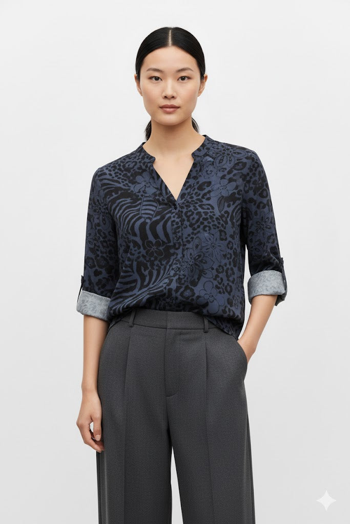 Laskeutuva paitapusero Italiasta.  2/3 hihan voi "tiputtaa" myös täyspitkäksi. Rintatasku. Pyöristetty helma. Yhden koon paita on n. 36-44 suomen kokoa.