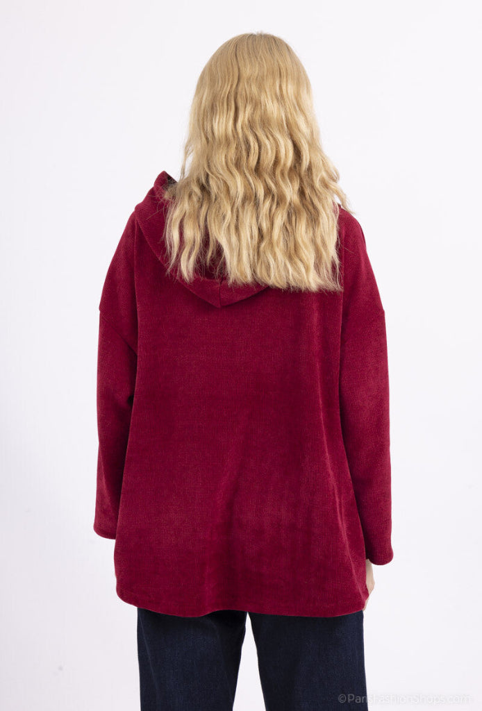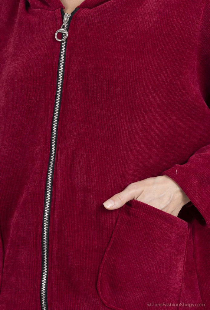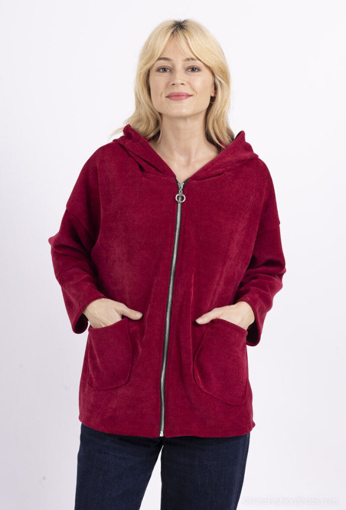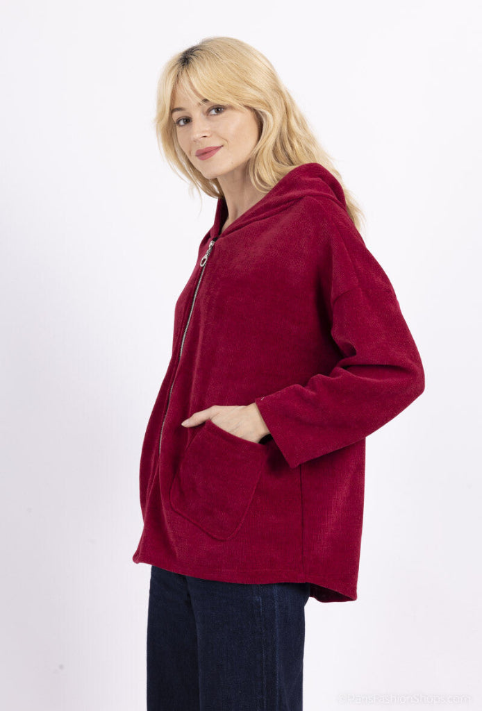 Abby hupparissa taskut edessä, vetoketjukiinnitys sekä se huppu.