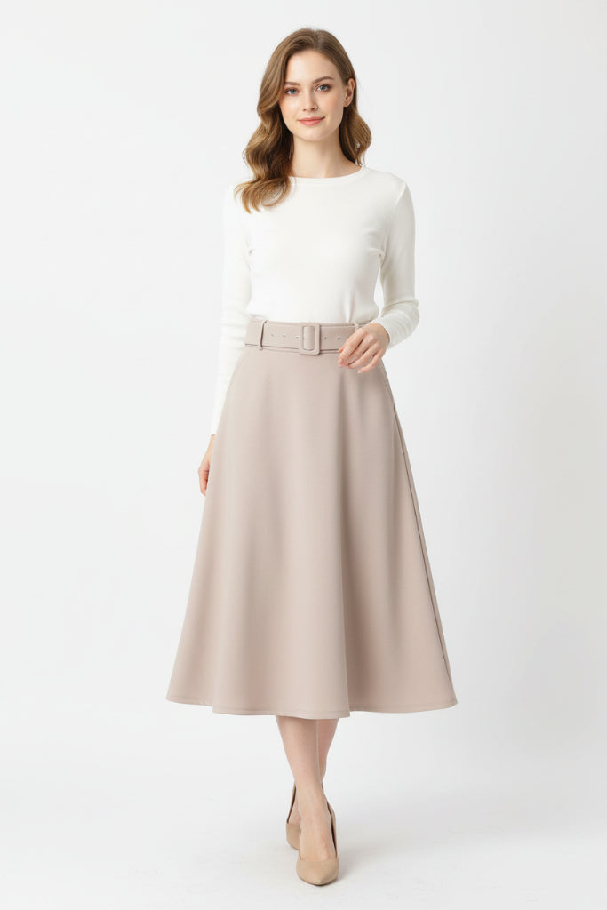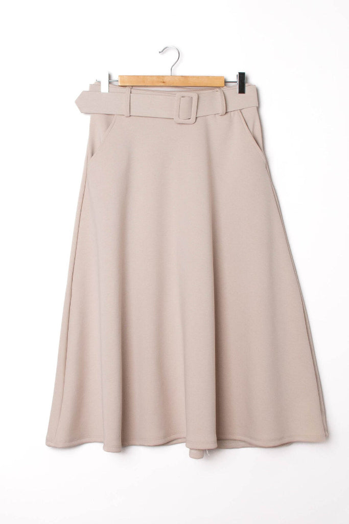 Kauniisti laskeutuva midipituinen hame. Superpehmeä kangas! Kuminauhavyötärö, taskut.