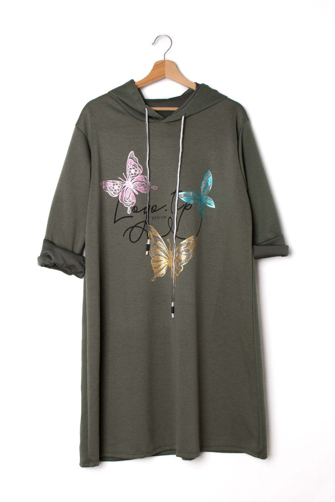 Niin pehmeä! Hupparimekko Sydney edessä printti muutoin yksivärinen. Pitkät hihat. Nyöri hupussa.