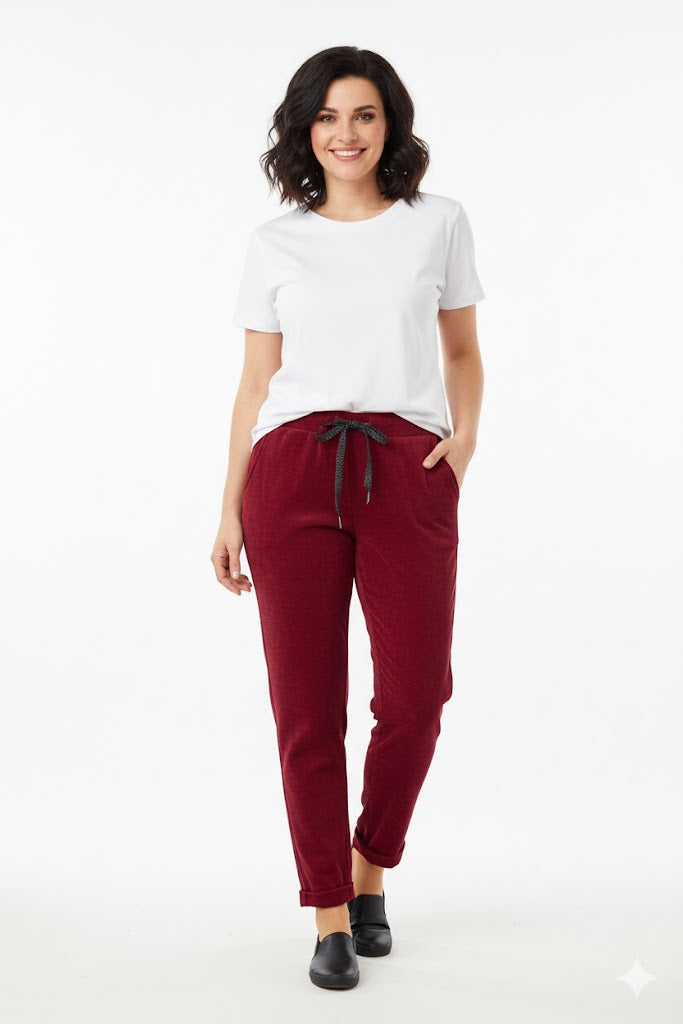 Vakosamettiset pehmeät kapealahkeiset Joggeri- housut. Kuminauhavyötärön voi kiristää nyörillä. Kääri lahje mielesi mukaan. Tosi mukavat päällä!