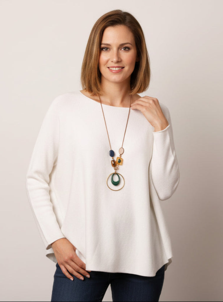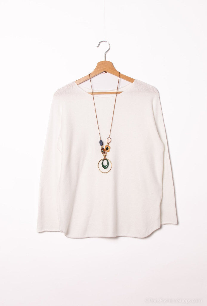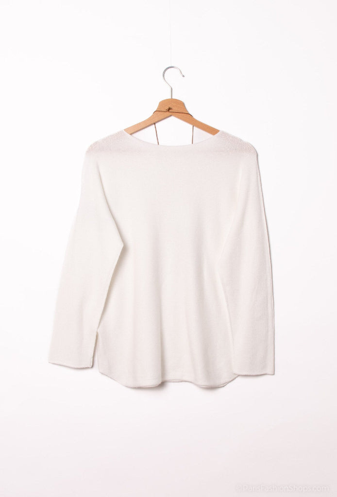 Yksinkertainen pehmeä neule. Pyöreä pääntie, pitkät hihat. Tyköistuva.