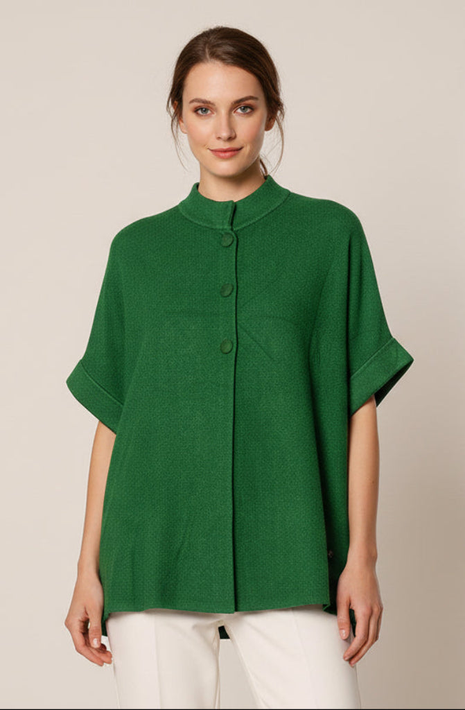 Rento, eleganssi neulosliivi. Napakka kangas. Aubree liivijakussa laskeutuva viittamainen malli, ja hienostunut pystykaulus. Edessä kolme isoa nappia, kauluksessa neppari. Pidä auki tai kiinni!