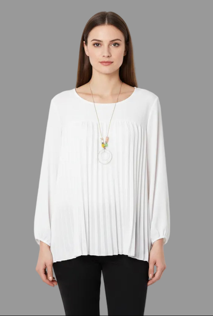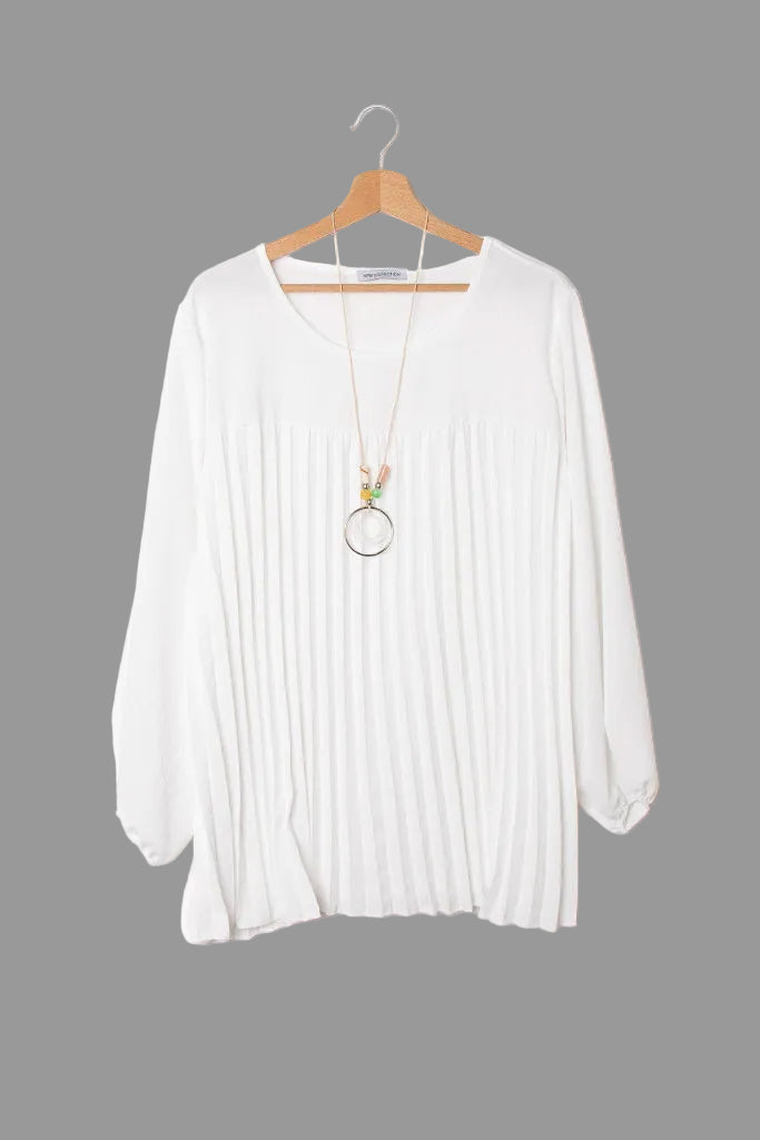 Kevyt, pliseerattu pusero kaulakorulla. Yksivärinen pusero on siro olkapäiltä, laskeutuu kauniisti, eikä levennä! Ihana koolle 38-46. Hihansuissa kuminauhat.